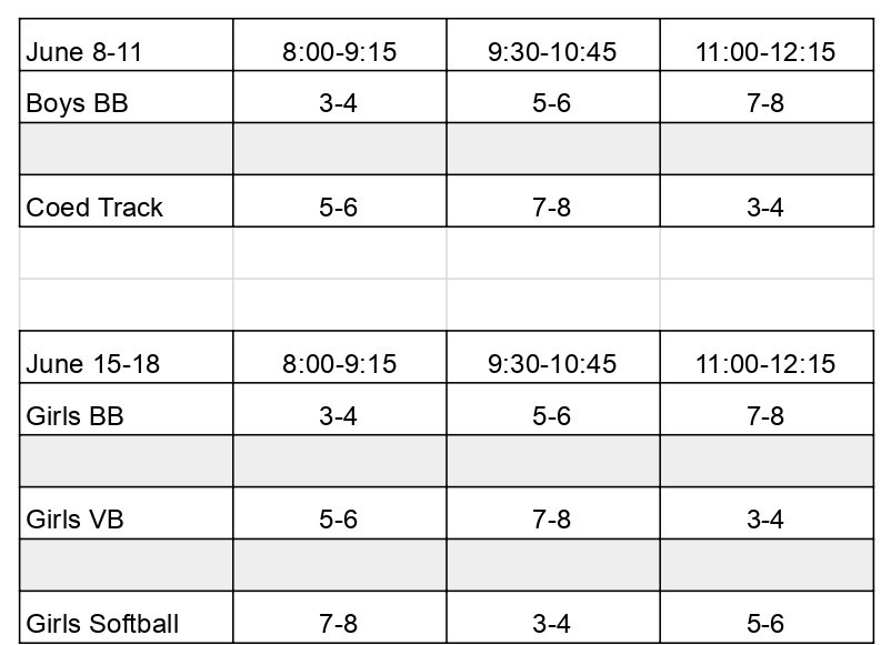 June 8-11, we will have two camps for students entering grades 3-8 in the 2026 school year.